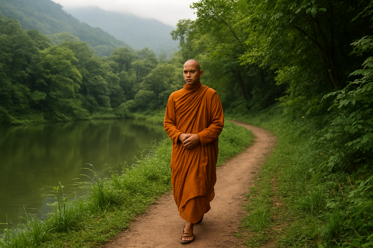 Au coeur des montagnes asiatiques, les moines bouddhistes se lèvent tôt le matin. Ils commencent à méditer et à prier. Après, ils pratiquent la pleine conscience en jardinant, en faisant le ménage ou d’autres activités simples. Ils pratiquent aussi la marche méditative.